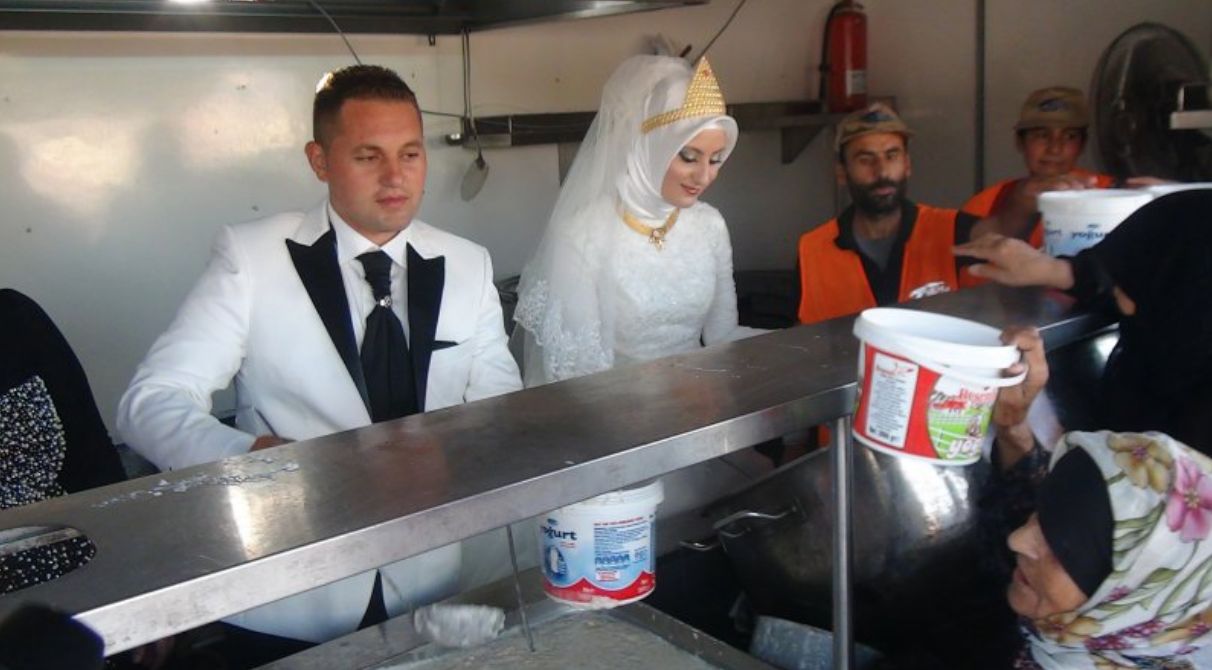 Fethullah Üzümcüoğlu and Esra Polat were preparing for their wedding day in Turkey. As preparations were being made the father of the groom had this idea. What if, instead of having the traditional wedding dinner after the ceremony, what if we instead used that money & this opportunity to serve our Syrian brothers & sisters who are hungry? And that’s just what they did.